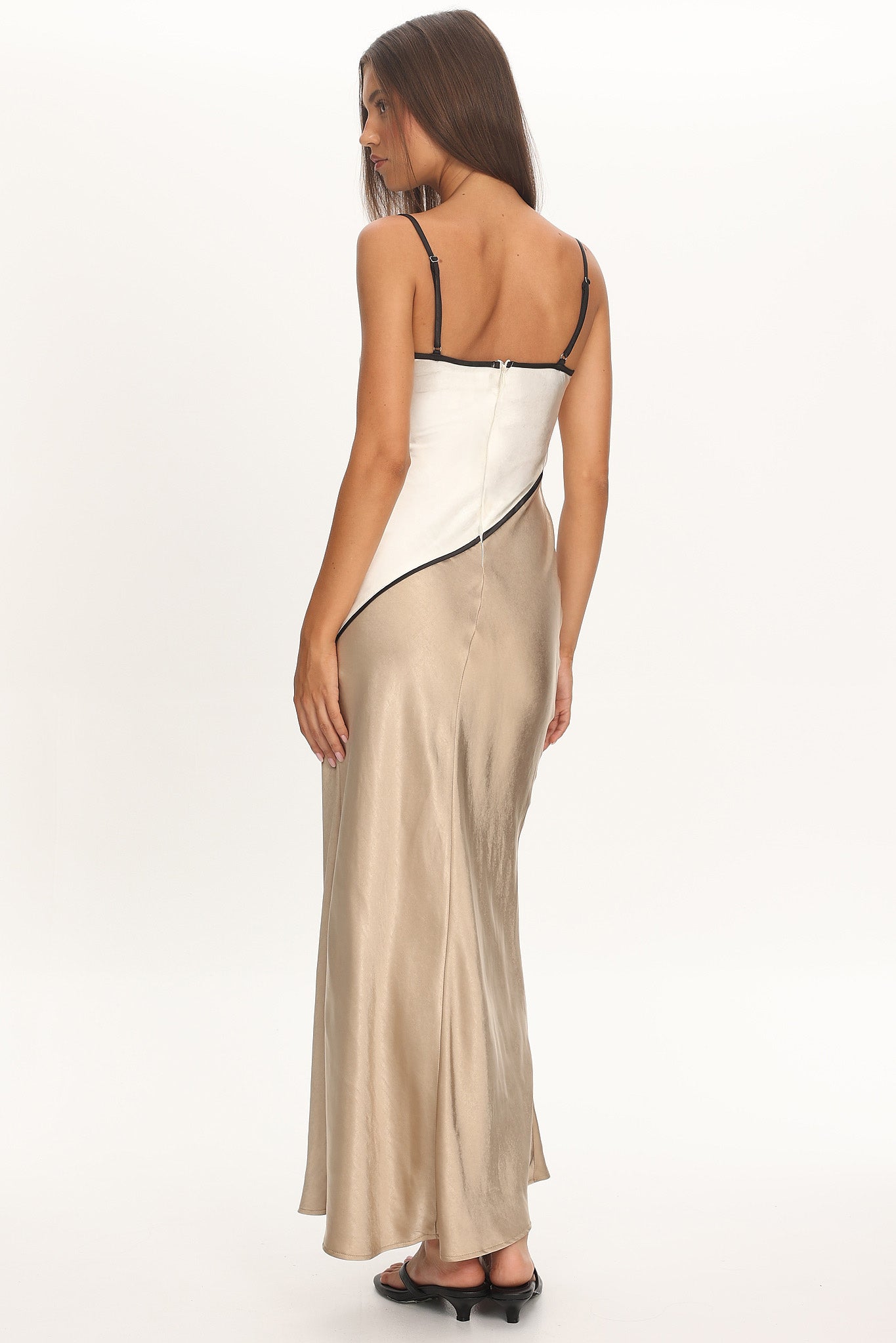Acapulco Cami Strap Tied Back Satin Maxi Dress Champagne