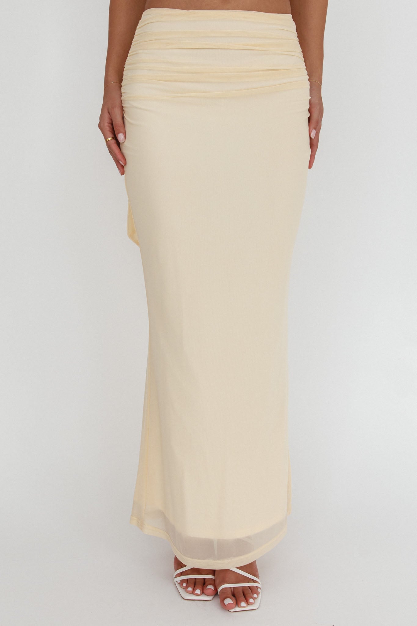 All The Lights Ruched Midi Skirt Cream