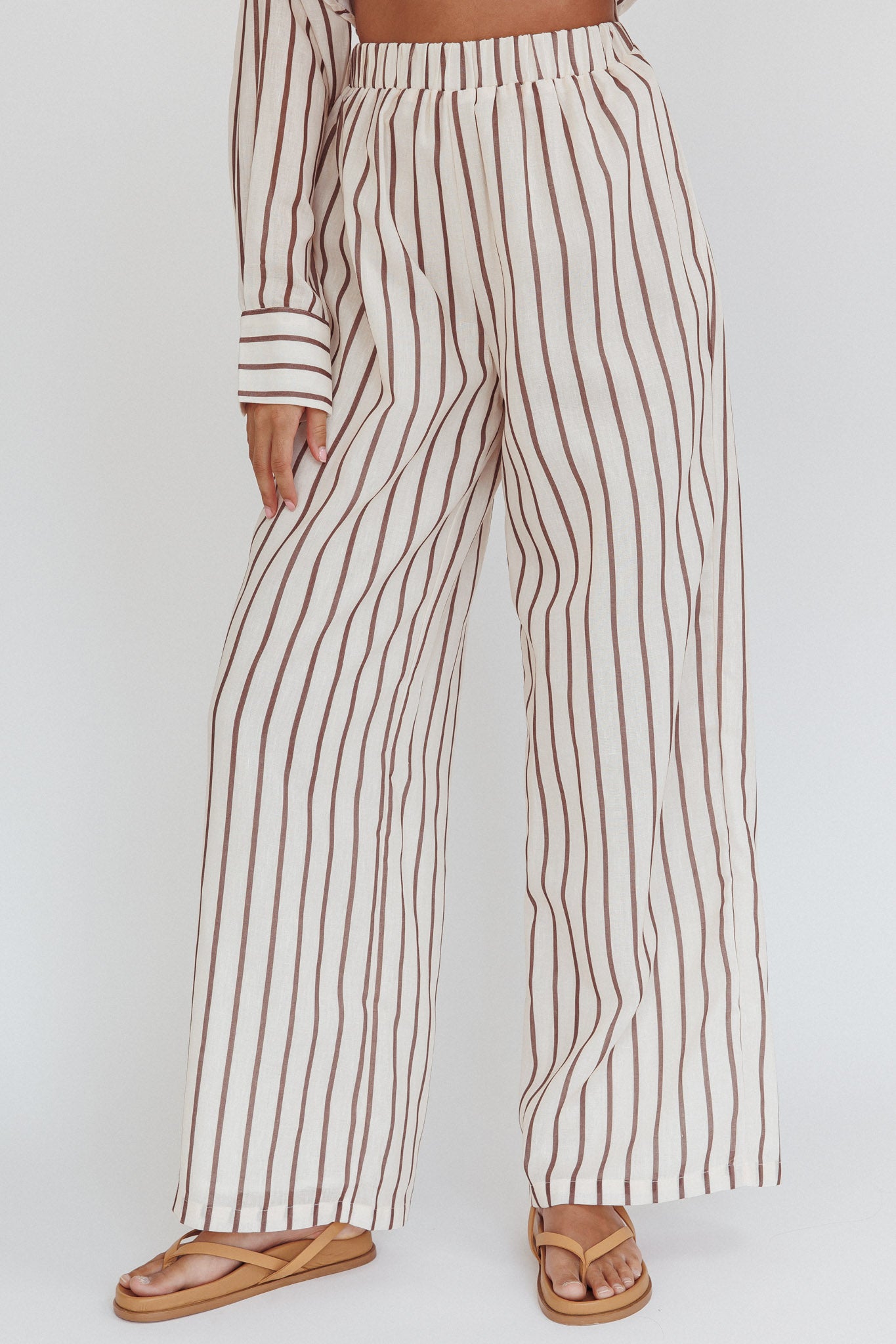 Alex Elastic Waist Pants Stripe Latte