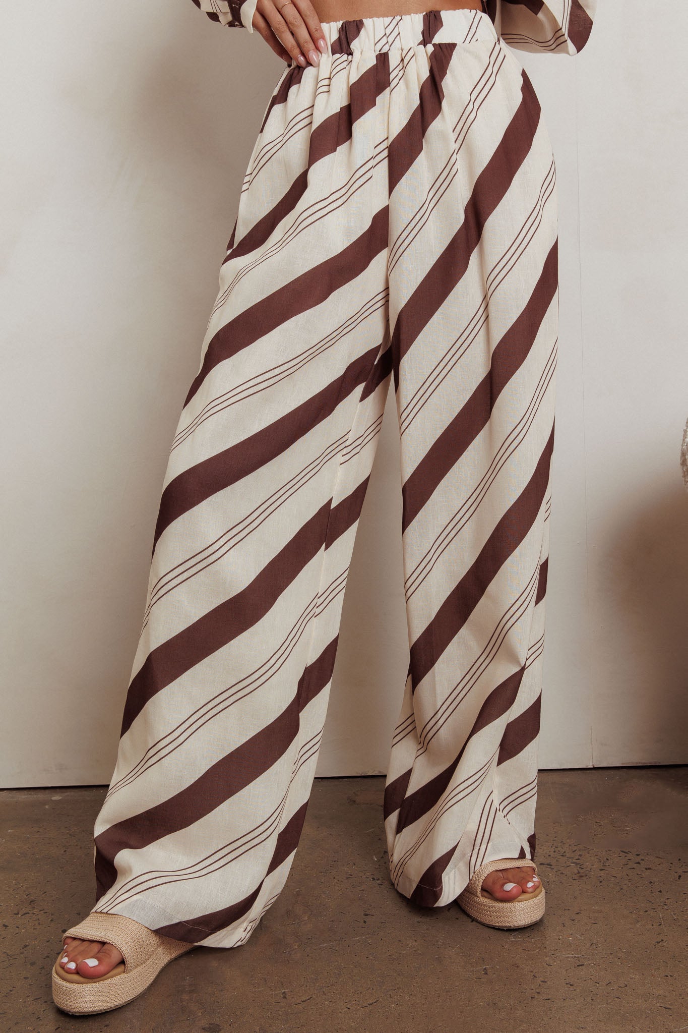 Alex Elastic Waist Striped Print Pant Cream/Cacao
