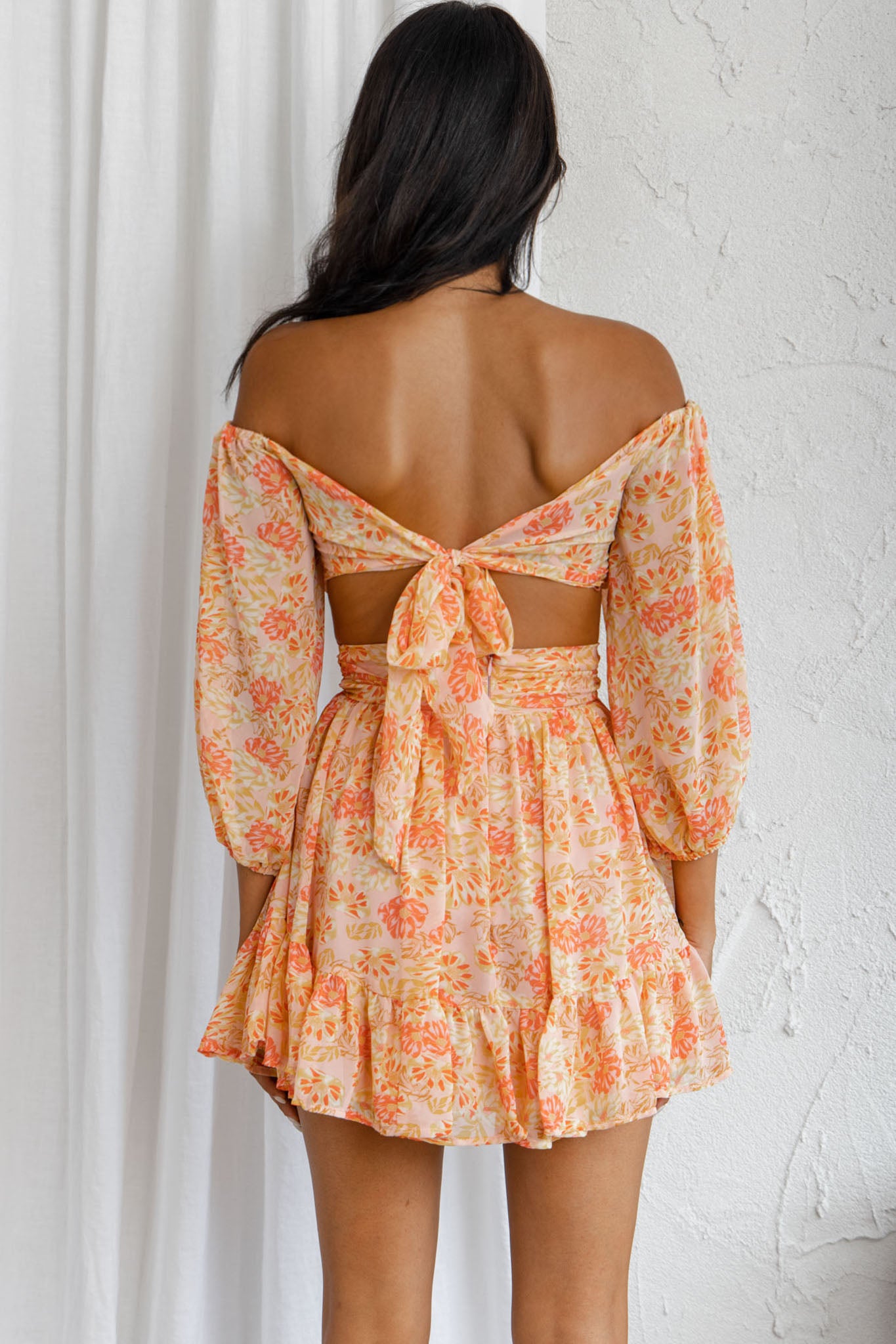 You'll be stealing hearts in our adorable Abby crop top. We are obsessed with the off-shoulder style and super cute. tie-up back! Perfect for a girls' day out. mimosa brunching and laughing 'til it hurts. Team it with its matching skirt. mules and a tote.