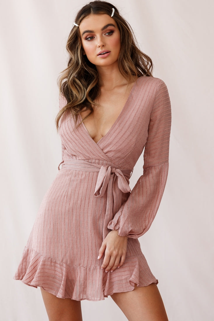 Turn heads in our pretty Adelaide dress. Featuring a flattering wrap front. long balloon sleeves. belted waist tie and ruffle-trimmed hemline. Perfect for work or play. teamed with a blazer and pointed toe flats or heels and gold hoop earrings for a night out with the girls.