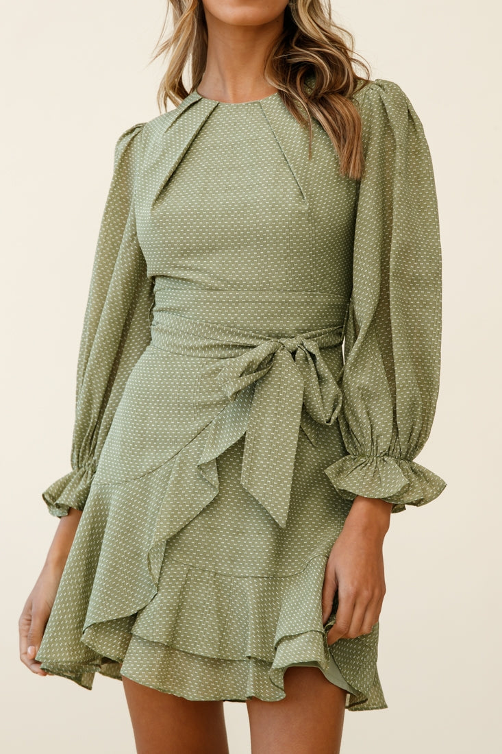 Agnes Long Sleeve Pleat Detail Dress Olive