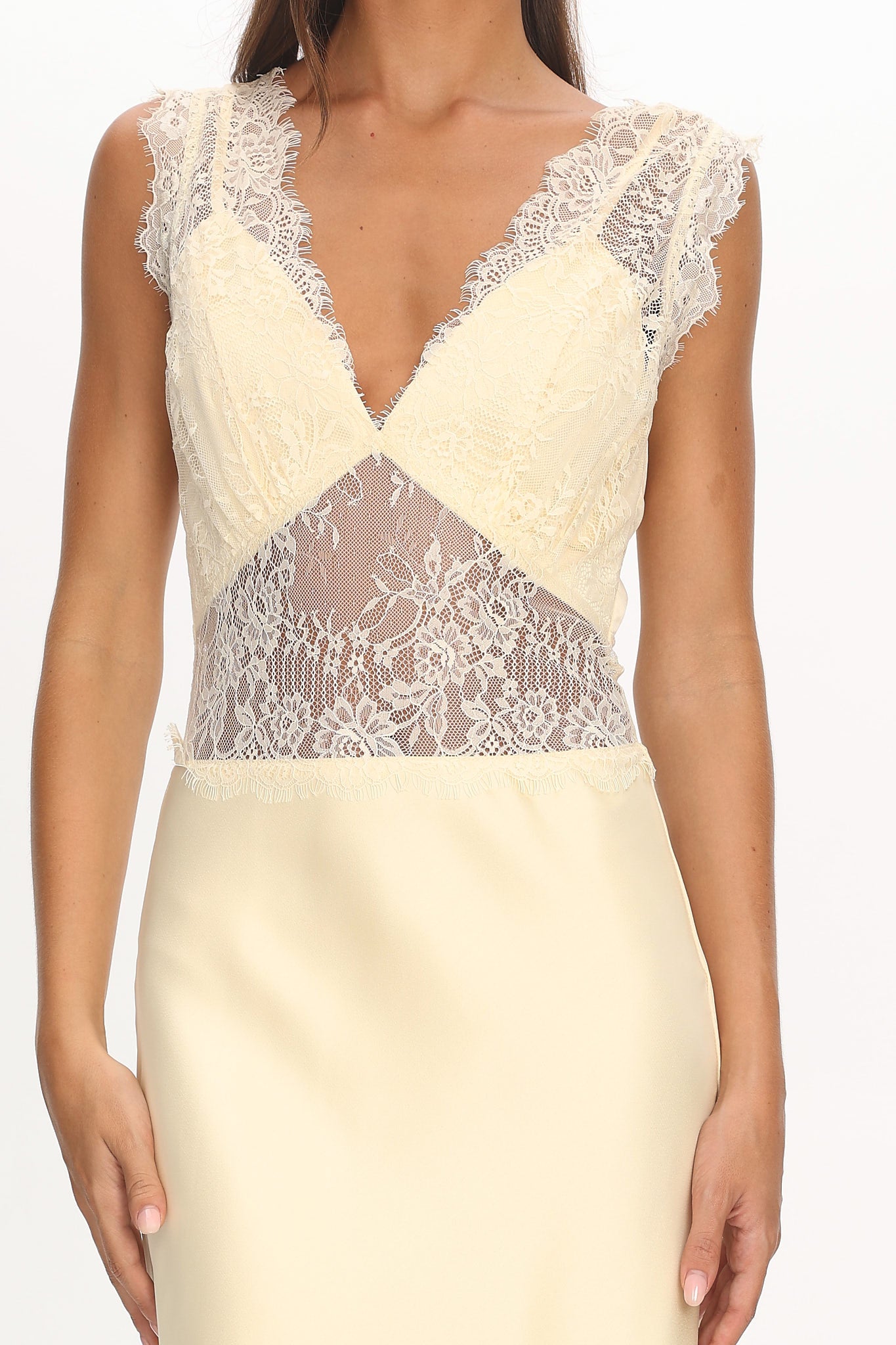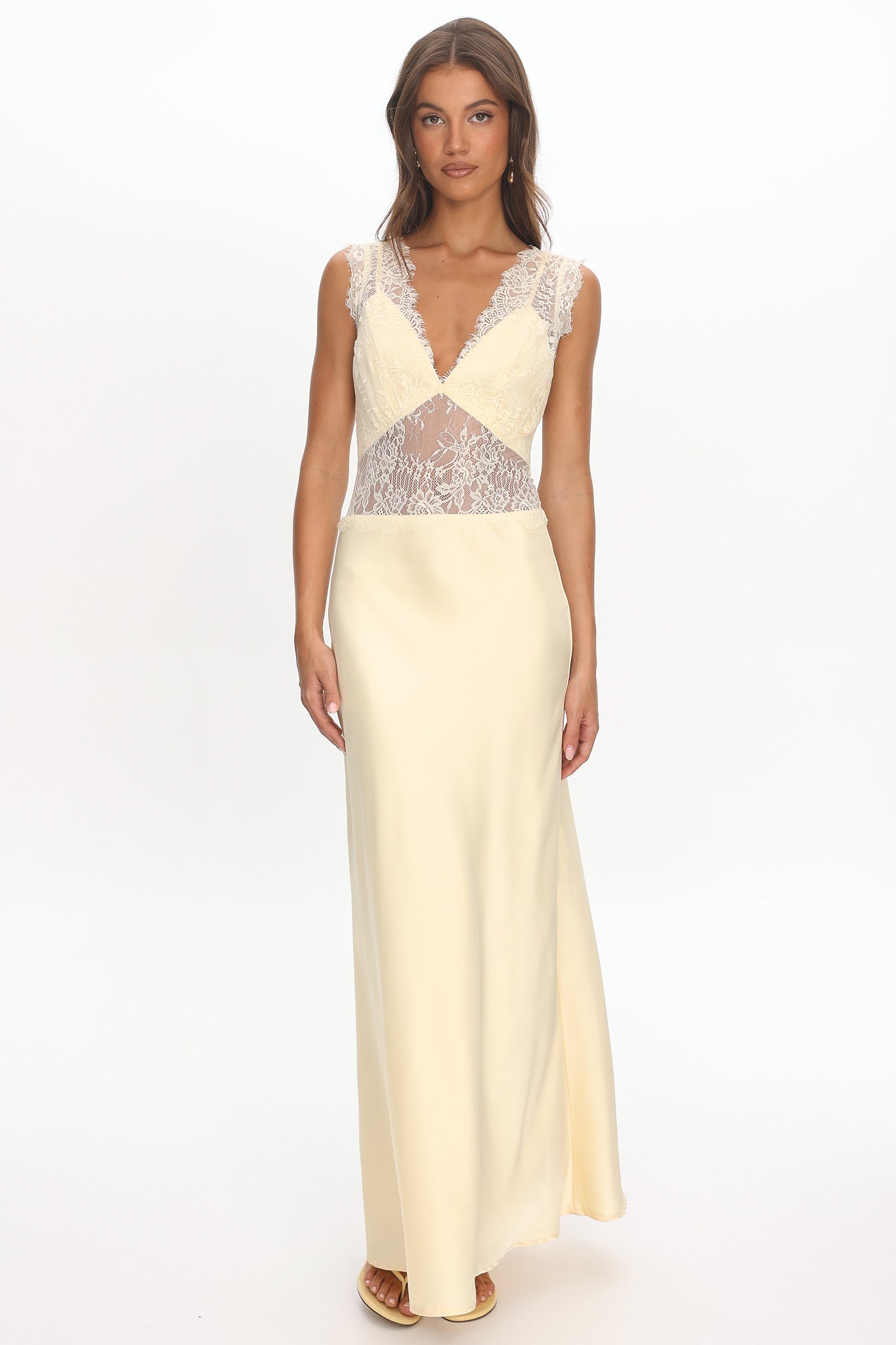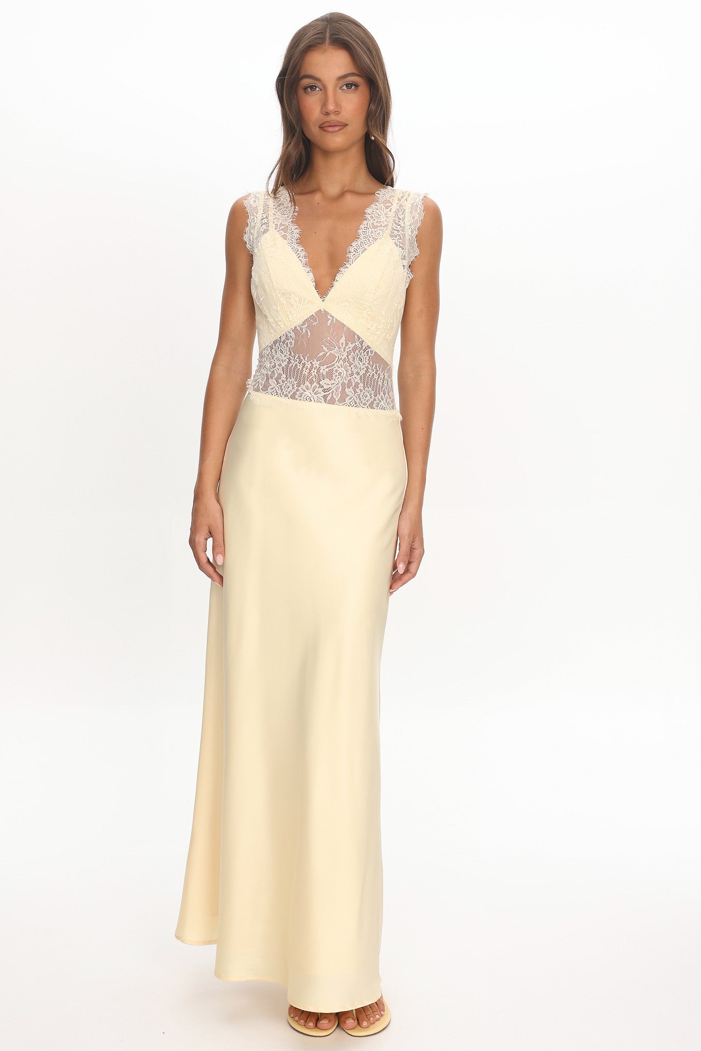 Turn heads in our gorgeous Alessa maxi dress. It features a lace bodice and key hole in the back. It's perfect for a wedding or special event teamed with a clutch and heels for a dreamy look.