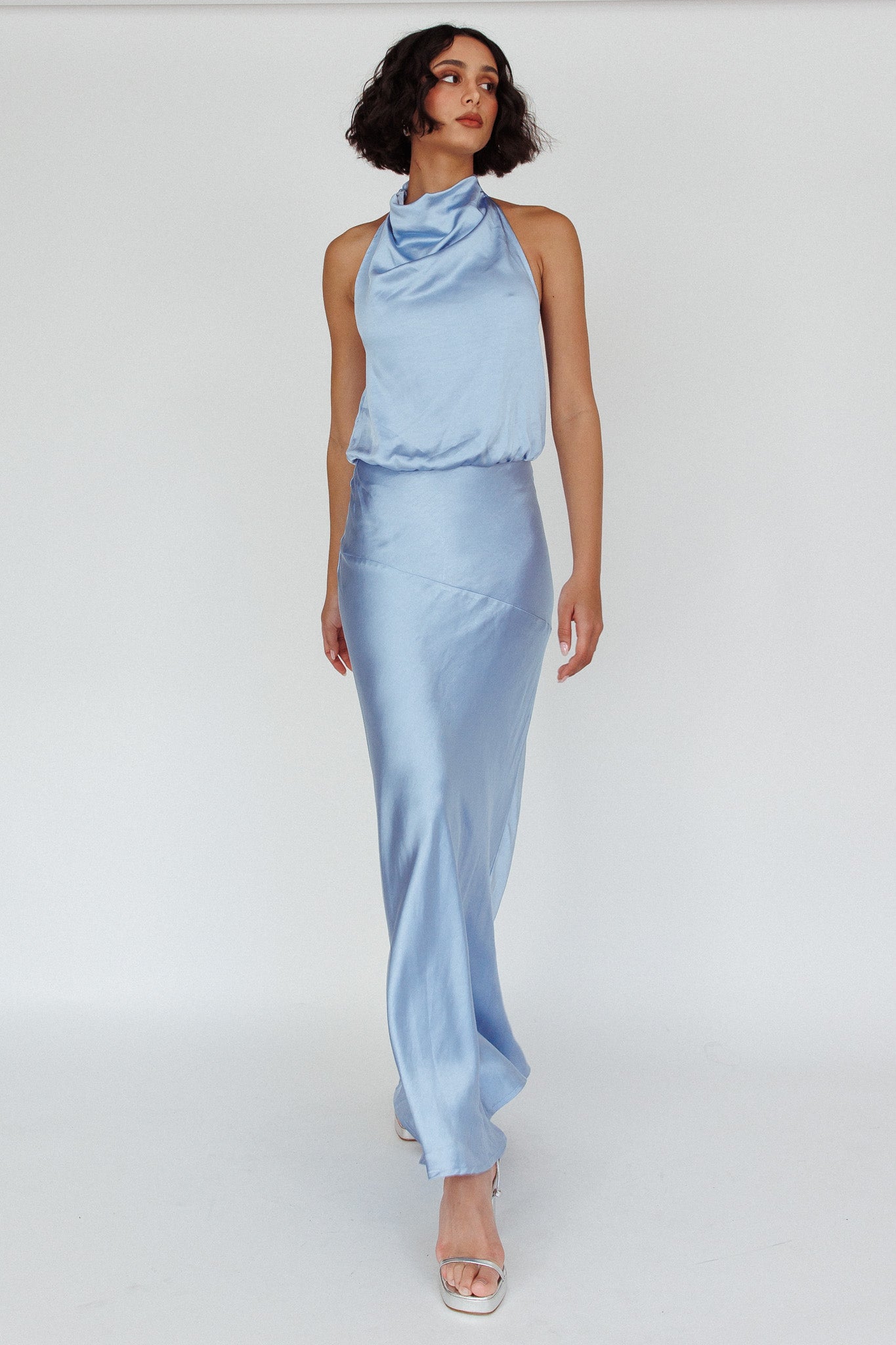 - Cowl halter neckline