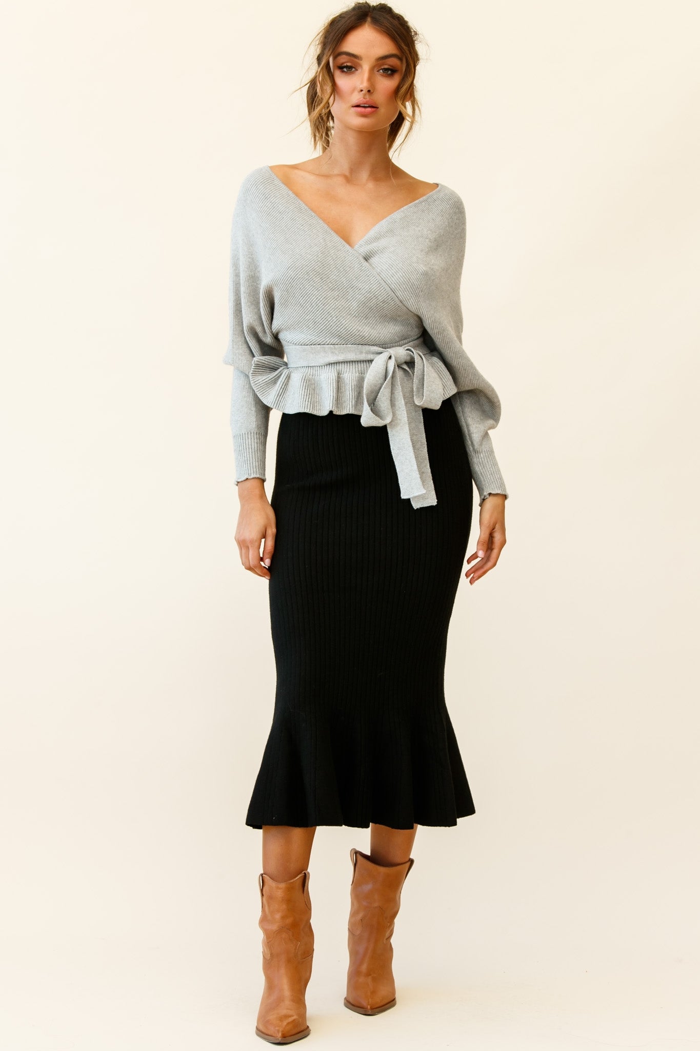 Cozy up in our chic Amara knit top. Featuring long sleeves. surplice neckline and a super cute peplum waist. We are loving the cut-out back detail. Perfect for the office teamed with sleek wide-leg pants or go casual with skinny blue jeans and tan boots for a look we are loving.