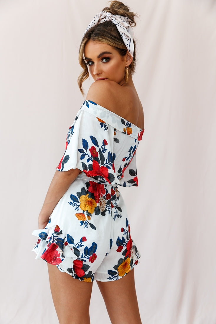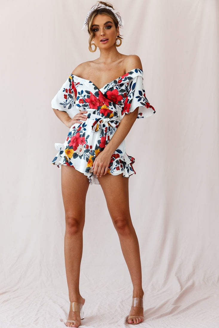 We are in love with this playful romper featuring a stunning off-shoulder design. belted waist-tie and beautiful floral print fabric. We are obsessed with the cheeky tiered frills at each side of the shorts! Wear it to happy hour with the girls or your next swanky rooftop pool-party and get ready to steal the show.
