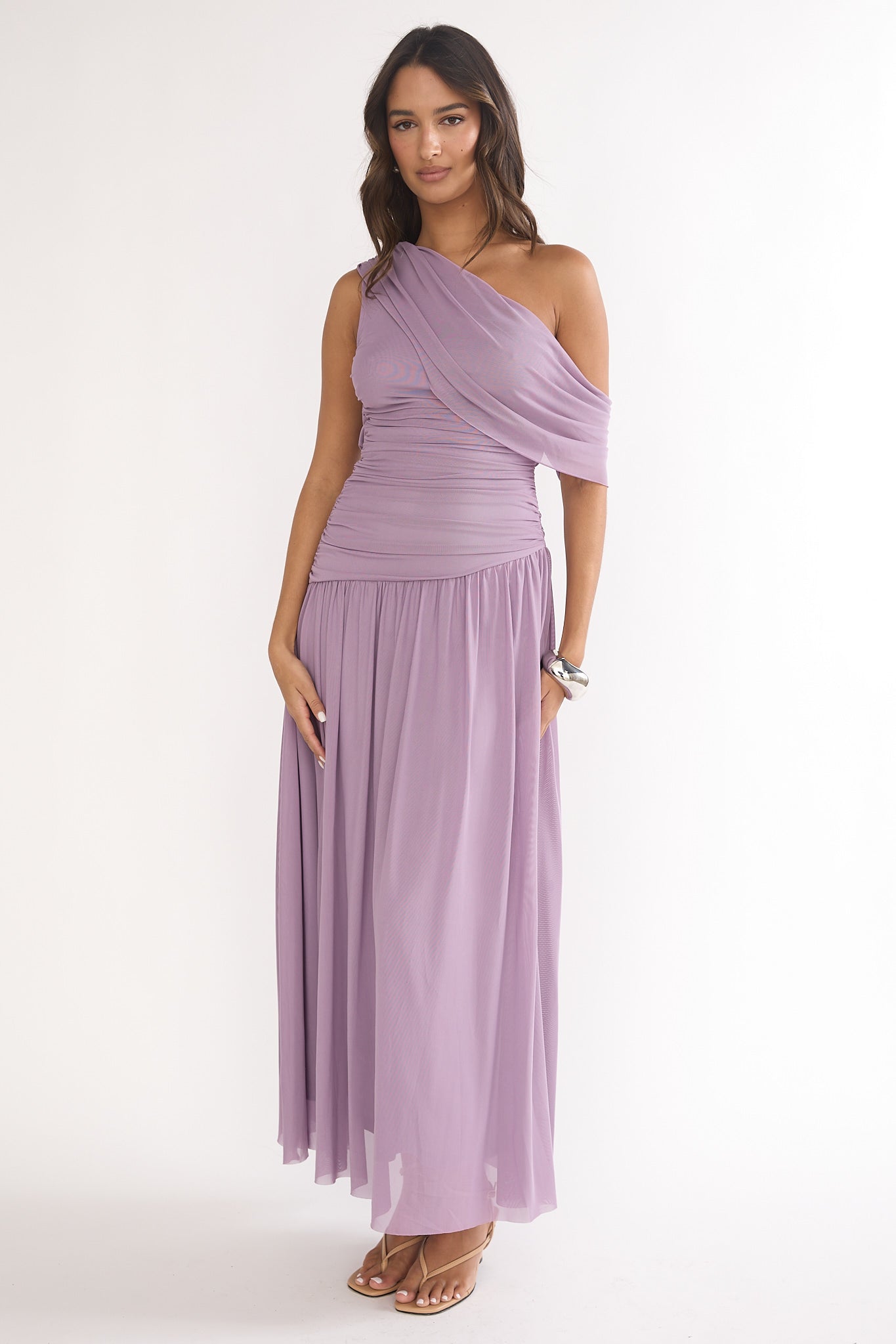 Twirl the night away in our pretty Amretha maxi dress. It features a draped neckline and is perfect for a wedding or special event with kitten heels and a purse for a look that will leave a lasting impression.