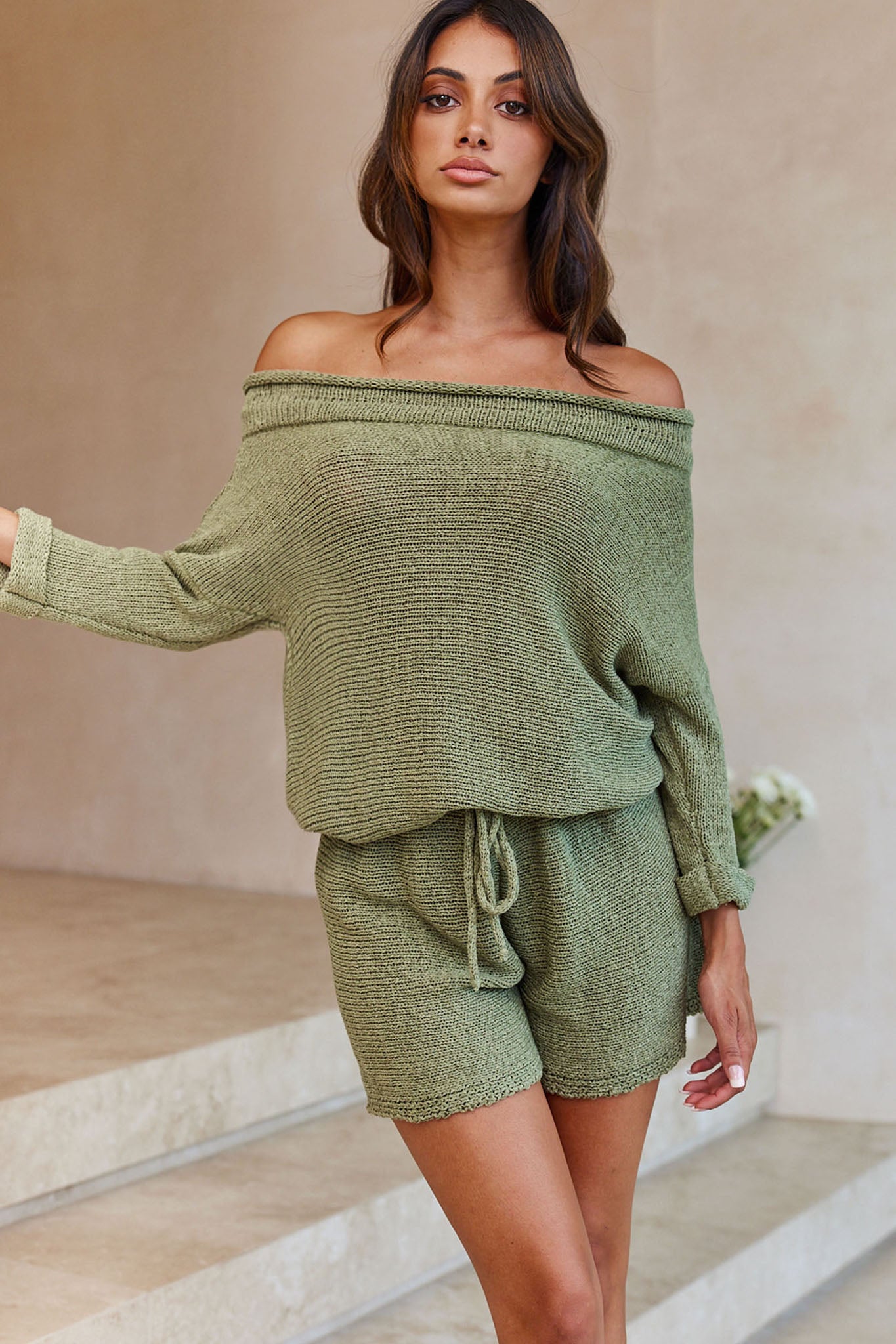 - Khaki knit romper