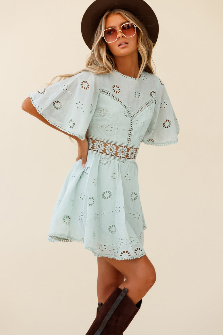 You're the picture of innocence in our super sweet Anais dress. We are utterly obsessed with its gorgeous broderie anglaise fabric and exposed back. Perfect for a special birthday or high tea with your besties. teamed with nude heels and a clutch.