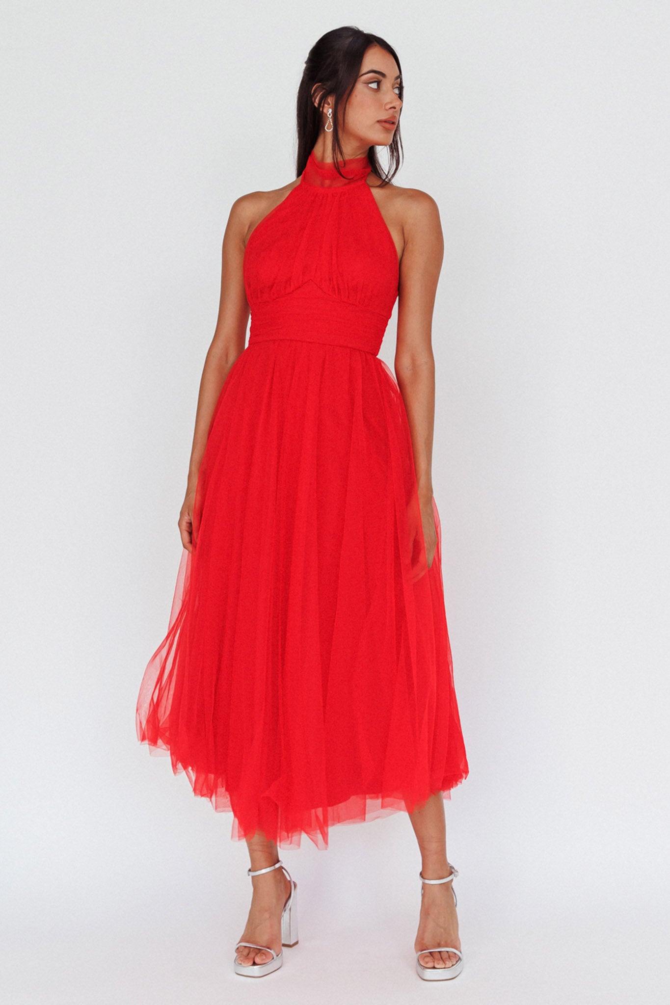 You'll feel like a princess in our stunning Andria midi dress. Perfect for a wedding or special occasion where you need to look like literal royalty. We are obsessed with its romantic tulle and gorgeous high-neck halterneck. Team it with diamante heels and a satin clutch for a look that'll leave Prince Charming speechless.